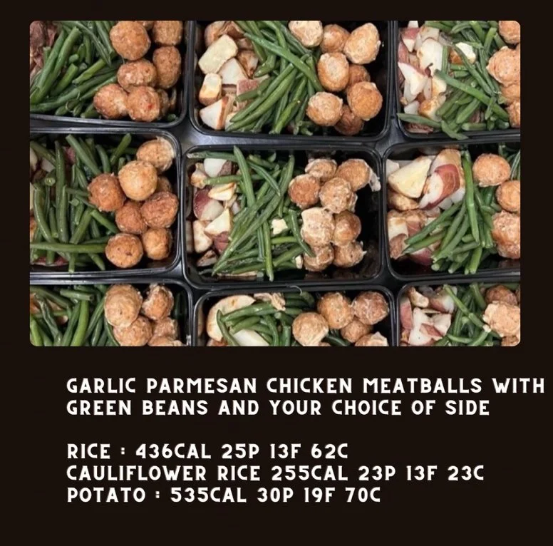 Orders Open : 10/24 at 6:00amOrders Close : 10/29 at 2:00pmOrder by 10/29 at 2pm to pickup 10/31-11/3Pickup times and locations can be found here Grassfed+finished ground beef spaghetti topped with grated parmesan $9.00 Add To Cart Added! Garlic Parmesan chicken meatballs with oven roasted green beans and your choice of side $9.00 Rice Cauliflower rice Diced potatoes Add To Cart Added! Cinnamon sugar pumpkin protein donut holes $6.00 Add To Cart Added! Shredded chicken or black bean taco salad $9.00 View Options Sprinkled with Liv - S’mores Protein Bites from $6.00 Select Size Small - order of 5 Large - order of 10 Add To Cart Added! Steak, Shrimp or Chicken Fried Rice from $9.00 View Options Chicken or Shrimp Alfredo (option for no meat) $9.00 View Options Beef tenderloin with your choice of mashed potato and oven roasted broccoli $15.00 Sweet potato mashed Regular mashed potatoes Add To Cart Added! Fajita Chicken Mac and Cheese $9.00 Add To Cart Added! Bacon cheeseburger bowl $9.00 Rice Cauliflower rice Diced potatoes Add To Cart Added! Italian sub pasta salad $9.00 Add To Cart Added! Sausage, egg and cheese hashbrown bowl $9.00 Hot Mild Sage Add To Cart Added! Lemon Pepper Tilapia with choice of side and oven roasted broccoli $9.00 Rice Cauliflower Rice Tilapia and Broccoli Only Add To Cart Added! Sprinkled with Liv - Protein pumpkin chocolate chip muffins - order of 2 $10.00 Add To Cart Added! White cheddar Mac and cheese $5.00 Add To Cart Added! Chicken Meatballs with choice of side $5.00 Rice Cauliflower rice Potatoes Add To Cart Added! Beef Stew $9.00 Rice Mashed Potatoes Add To Cart Added! Chicken Meatballs $9.00 Noodles Low Carb (Zucchini no noodles) Add To Cart Added! Individual Chicken Pot Pie $9.00 Add To Cart Added! Cajun Chicken Pasta $9.00 Yes No Add To Cart Added! Pumpkin dark chocolate chip mini protein pancake bites $6.00 Add To Cart Added! 🍰Salted caramel Protein Cheesecake Fluff $5.00 Add To Cart Added! Gift card from $25.00 Select Value $25.00 $50.00 $75.00 $100.00 Purchase Added!